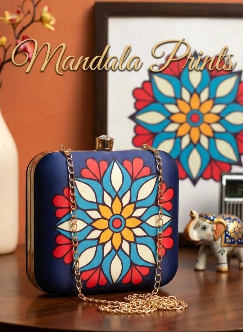 Artklim Blue Gold Printed Clutch