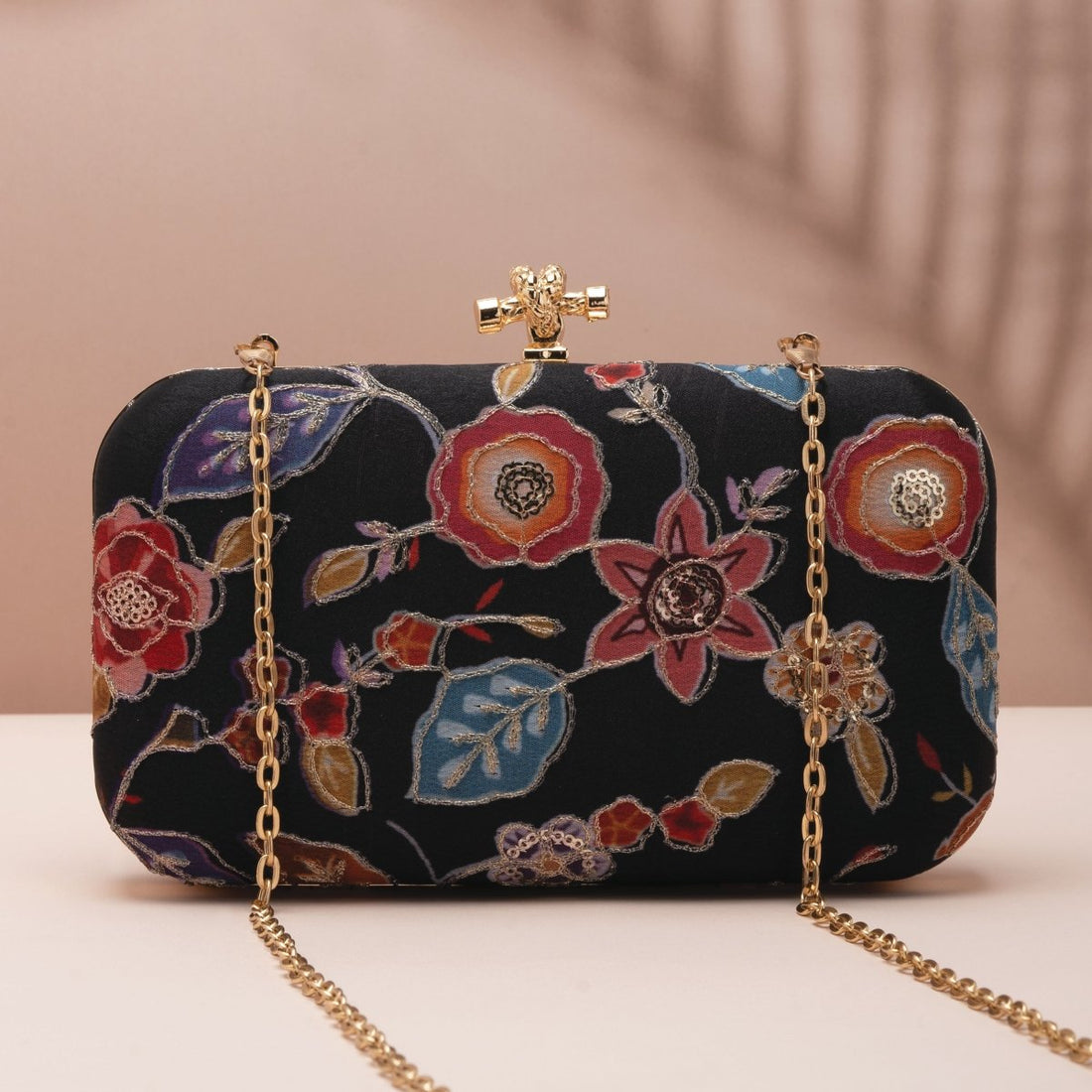 Artklim Peach Based Floral Printed Customized Clutch