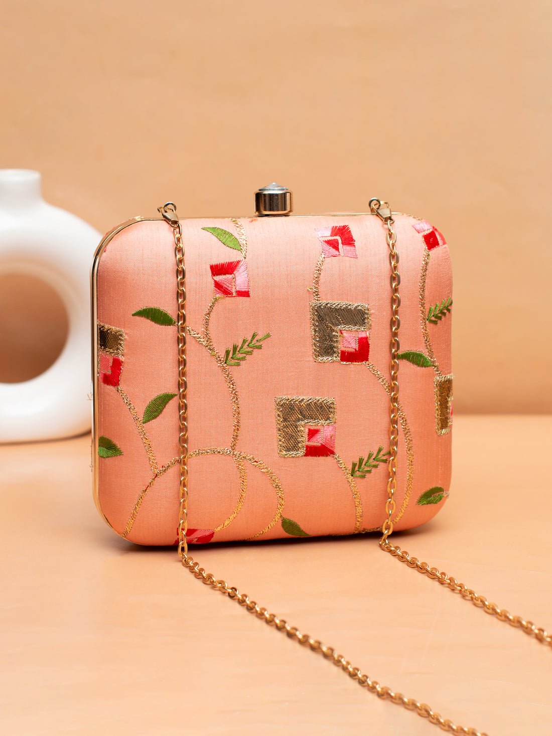 Artklim Peach Blossom – Floral Embroidered Silk Clutch