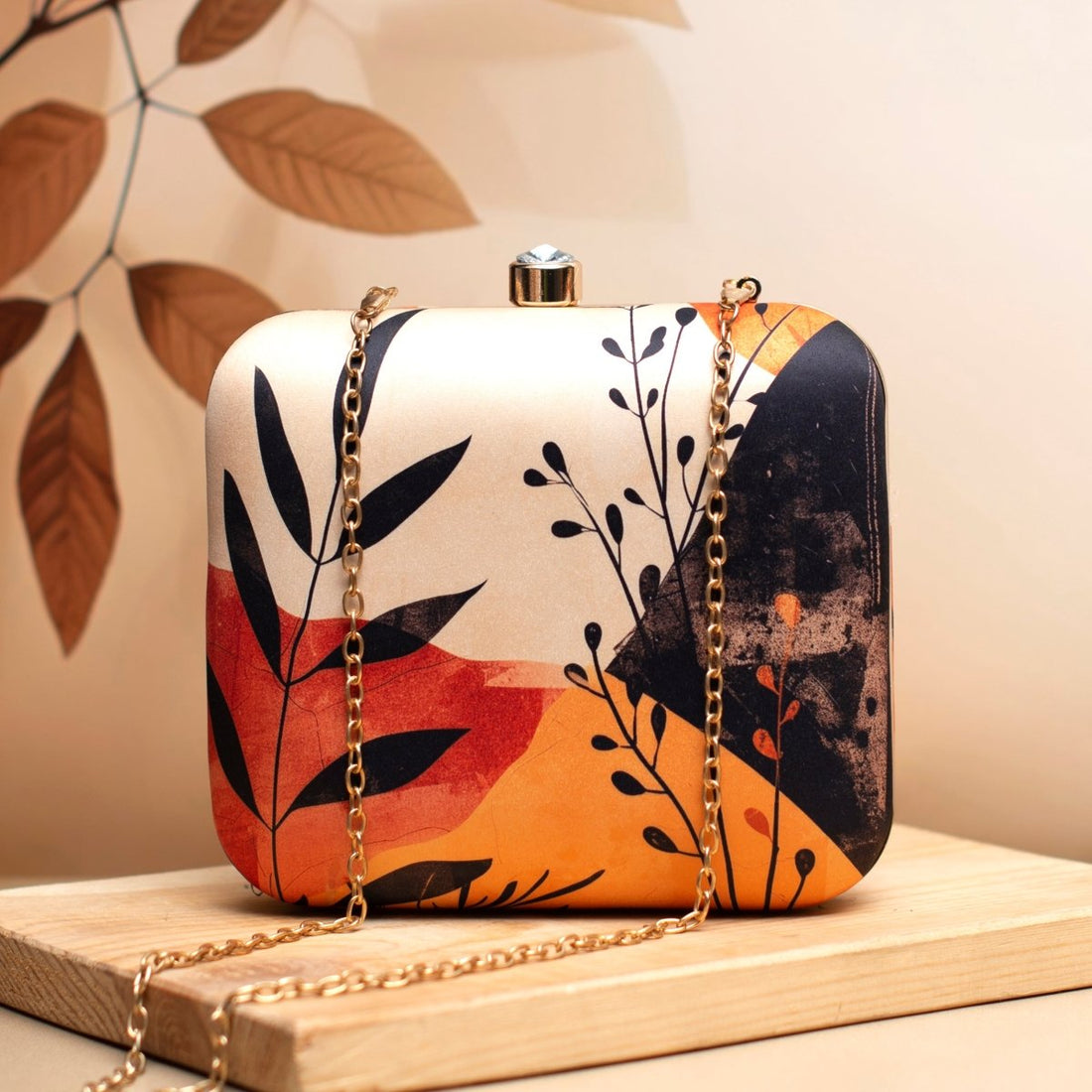 Artklim White Base Pastel Orange Floral Printed Fabric Clutch