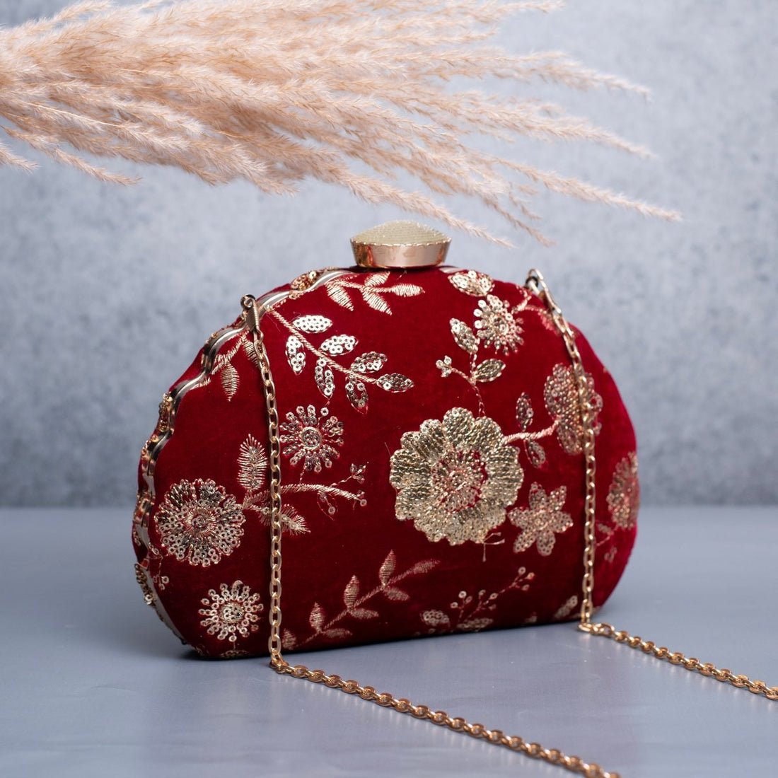 Artklim Red Based Golden Sequins Embroidery Clutch