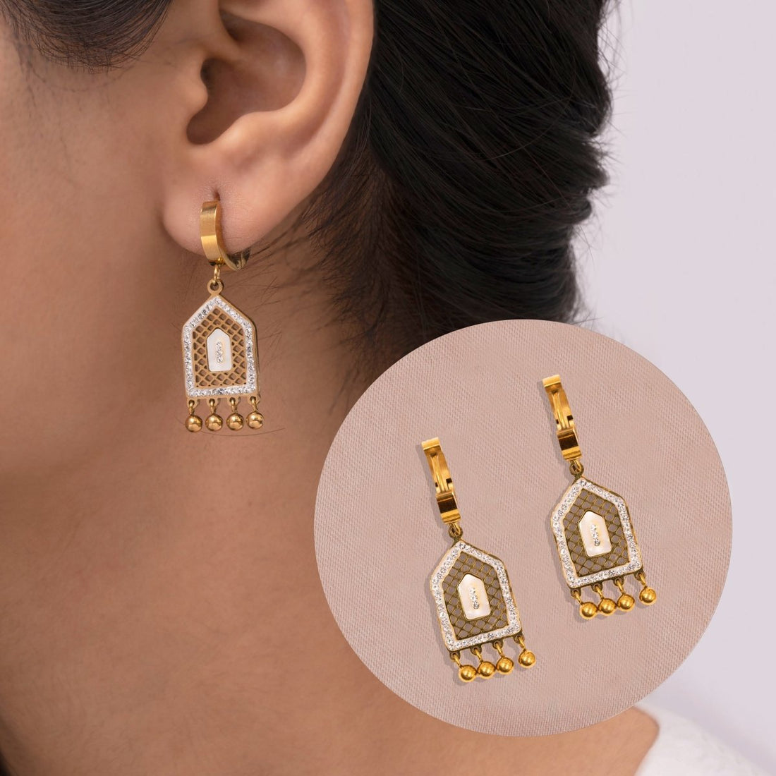 Artklim Gold Plated Geometric Pendant Hoop Earrings