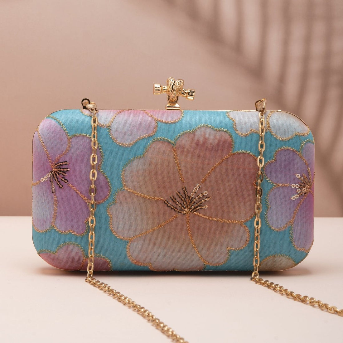 Artklim Pastel Blue Base Floral Printed Fabric Clutch