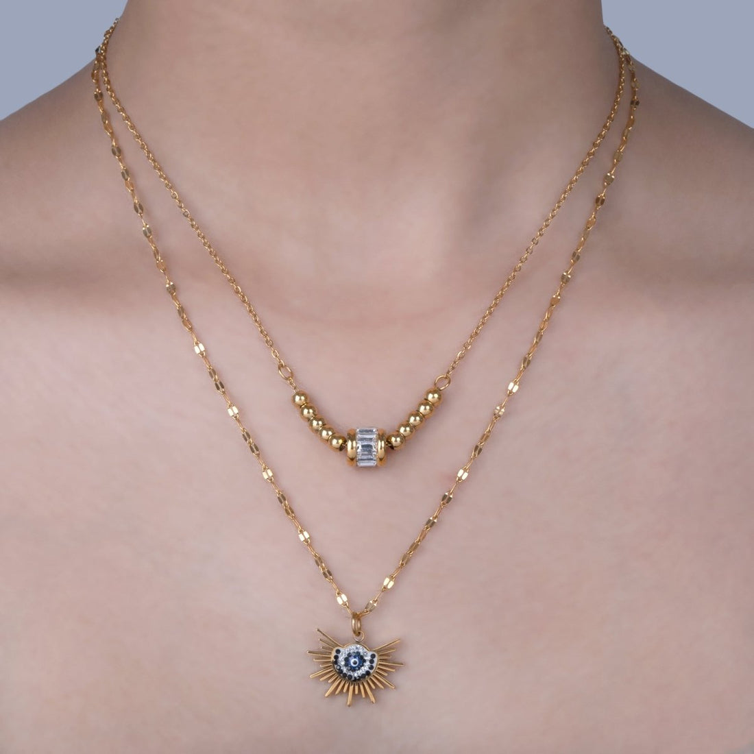 Artklim Gold Plated Dual Radiance Evil Eye Layered Necklace