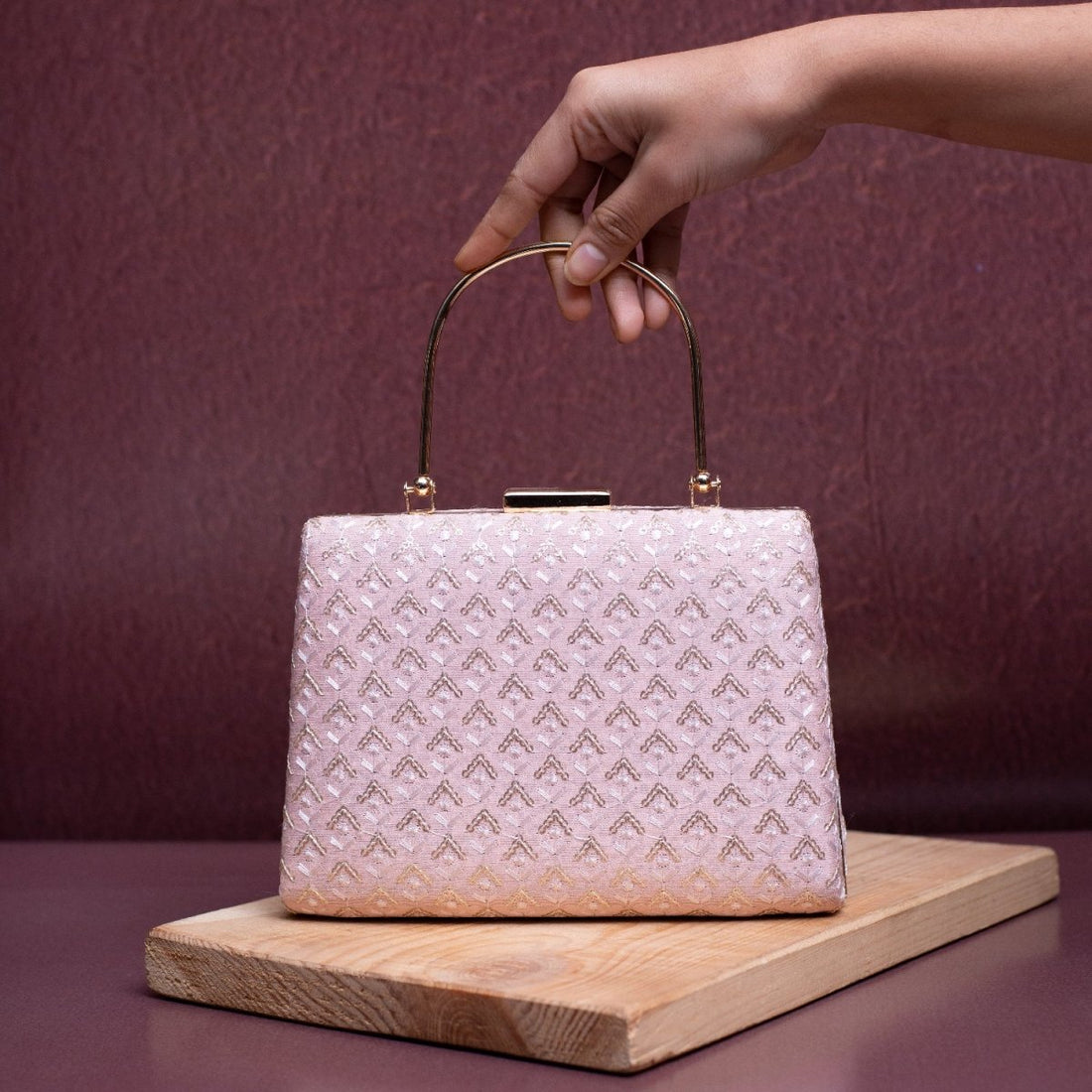 Artklim Baby Pink Based Sequins Embroidery Clutch