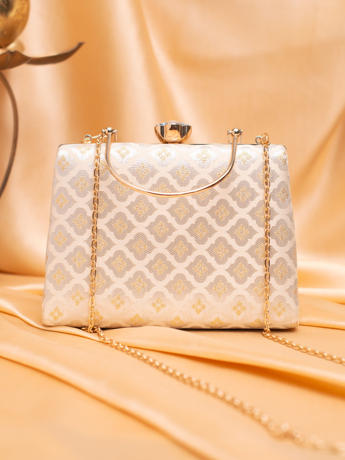 Artklim Elegant Brocade Handbag with Diamond Motif