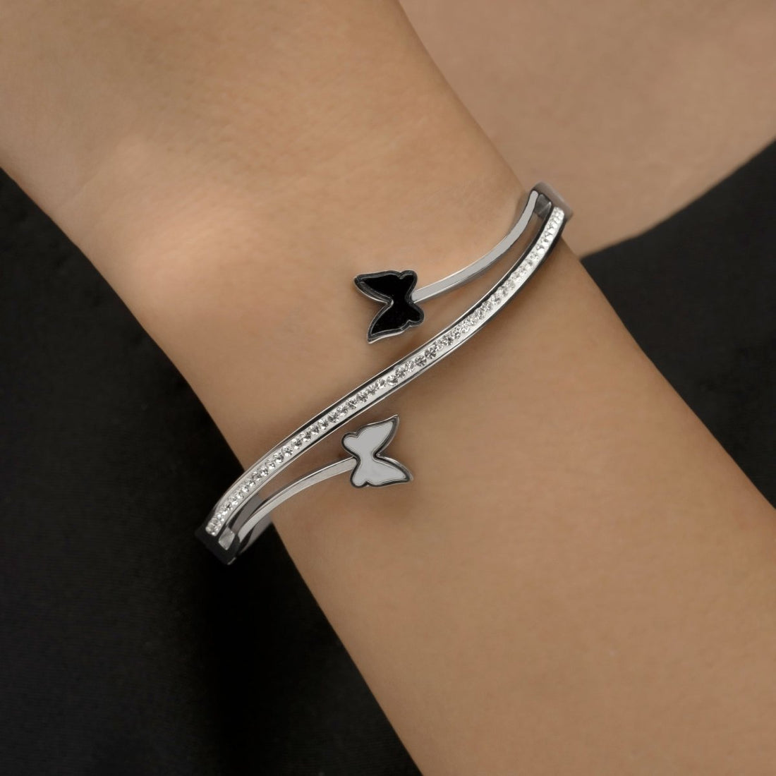 Artklim Silver Plated Black And White Butterfly Bangle Bracelet