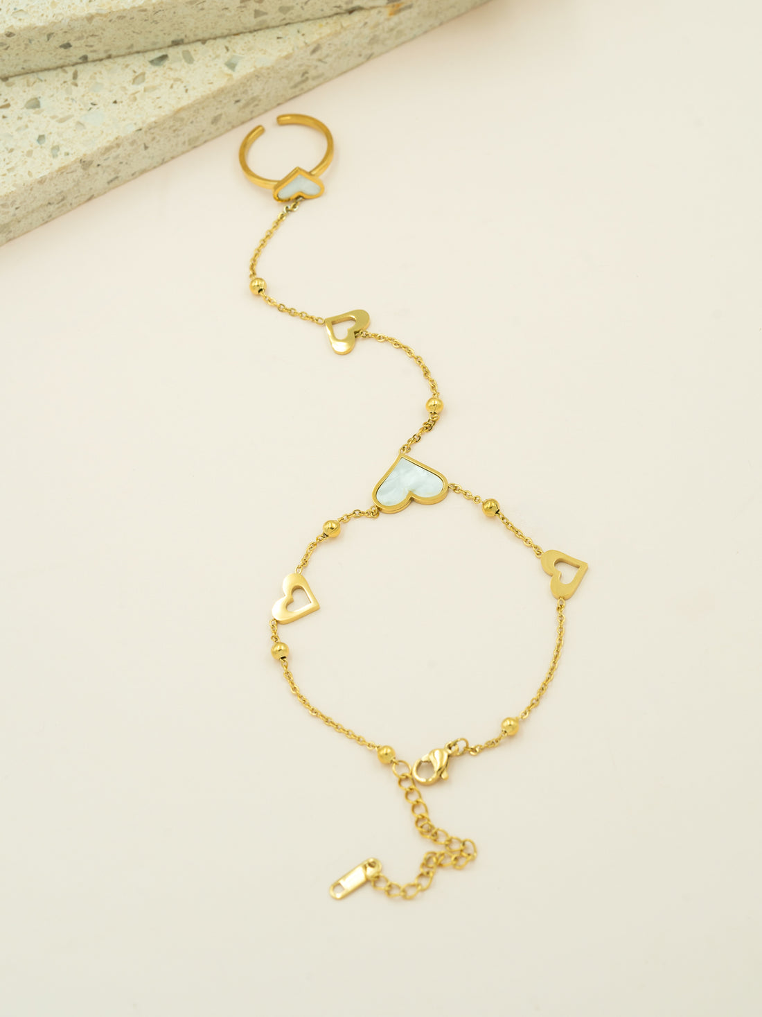 Artklim Elegant Golden Heart Anti Tarnish Ring Bracelet