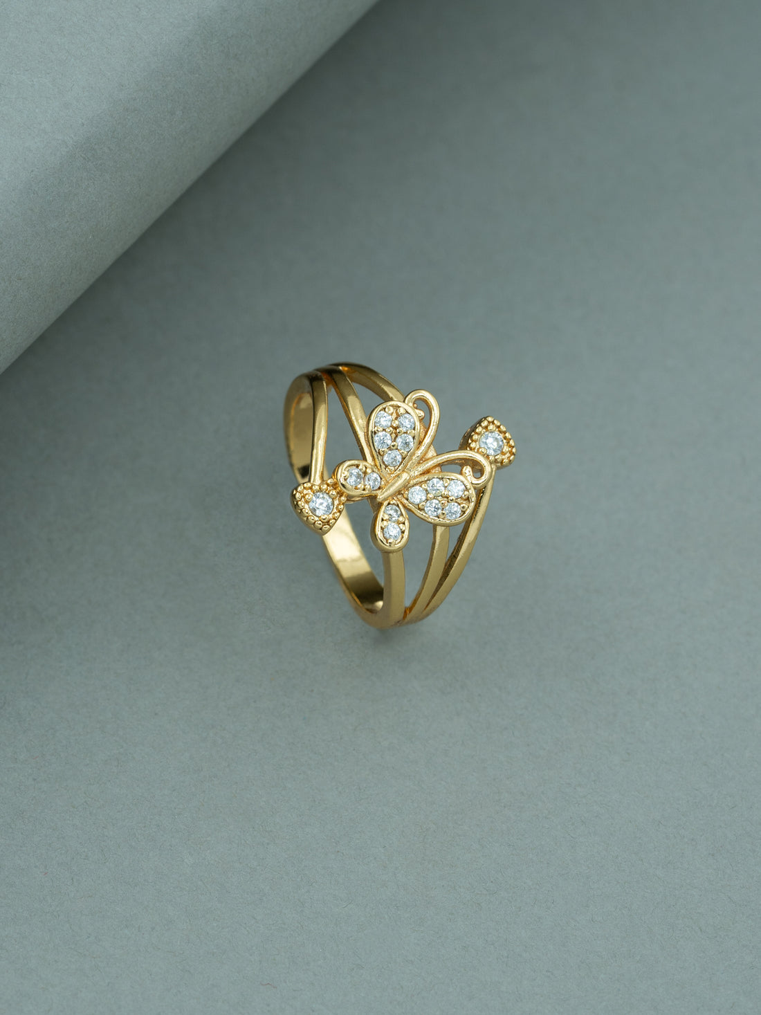 Artklim Gold-Plated Pave Butterfly Anti-Tarnish Ring