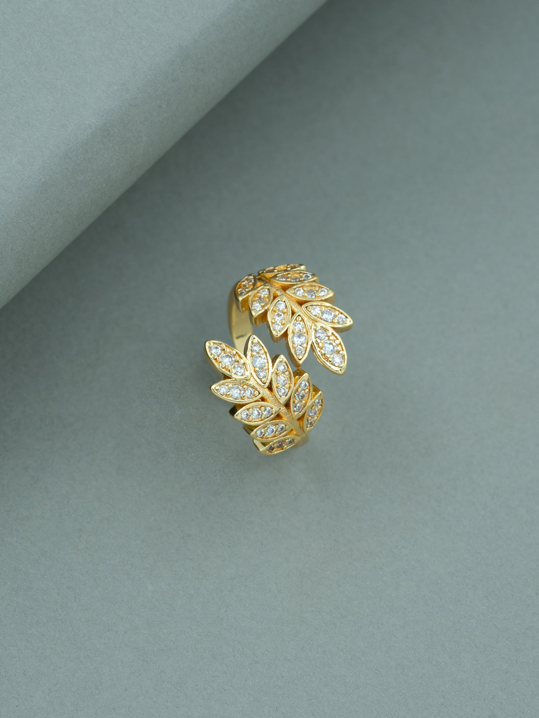 Artklim Gold-Plated Petite Leaf Anti-Tarnish Ring