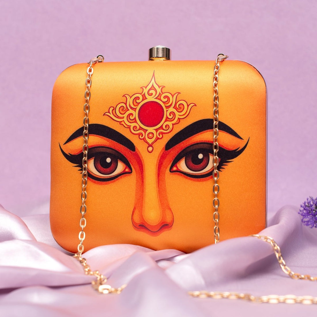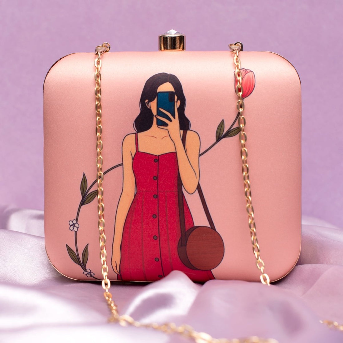 Artklim Peach Based Selfie Girl Portrait Printed Clutch