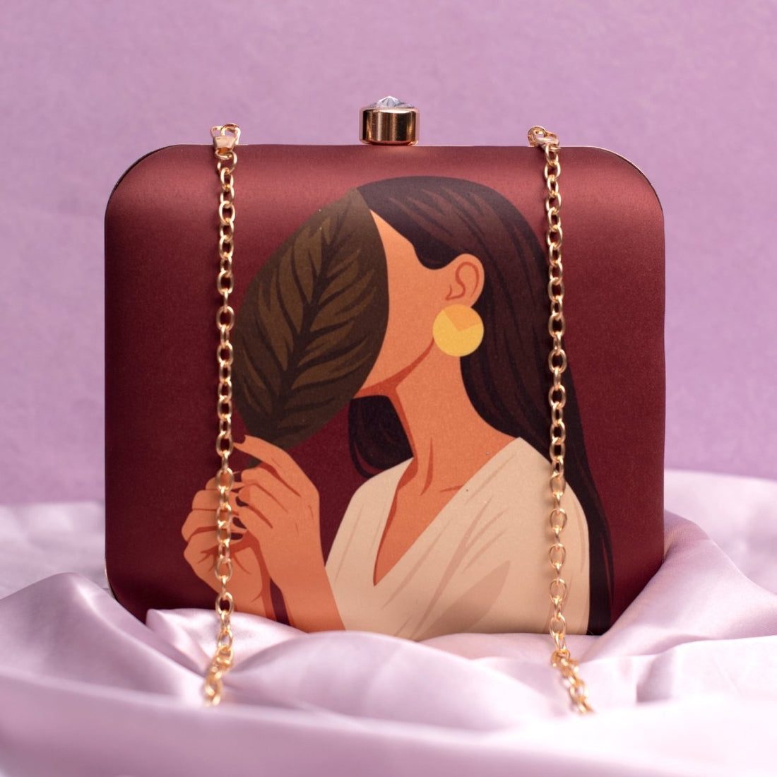 Artklim Dark Brown Based Asthetic Girl Portrait Printed Clutch