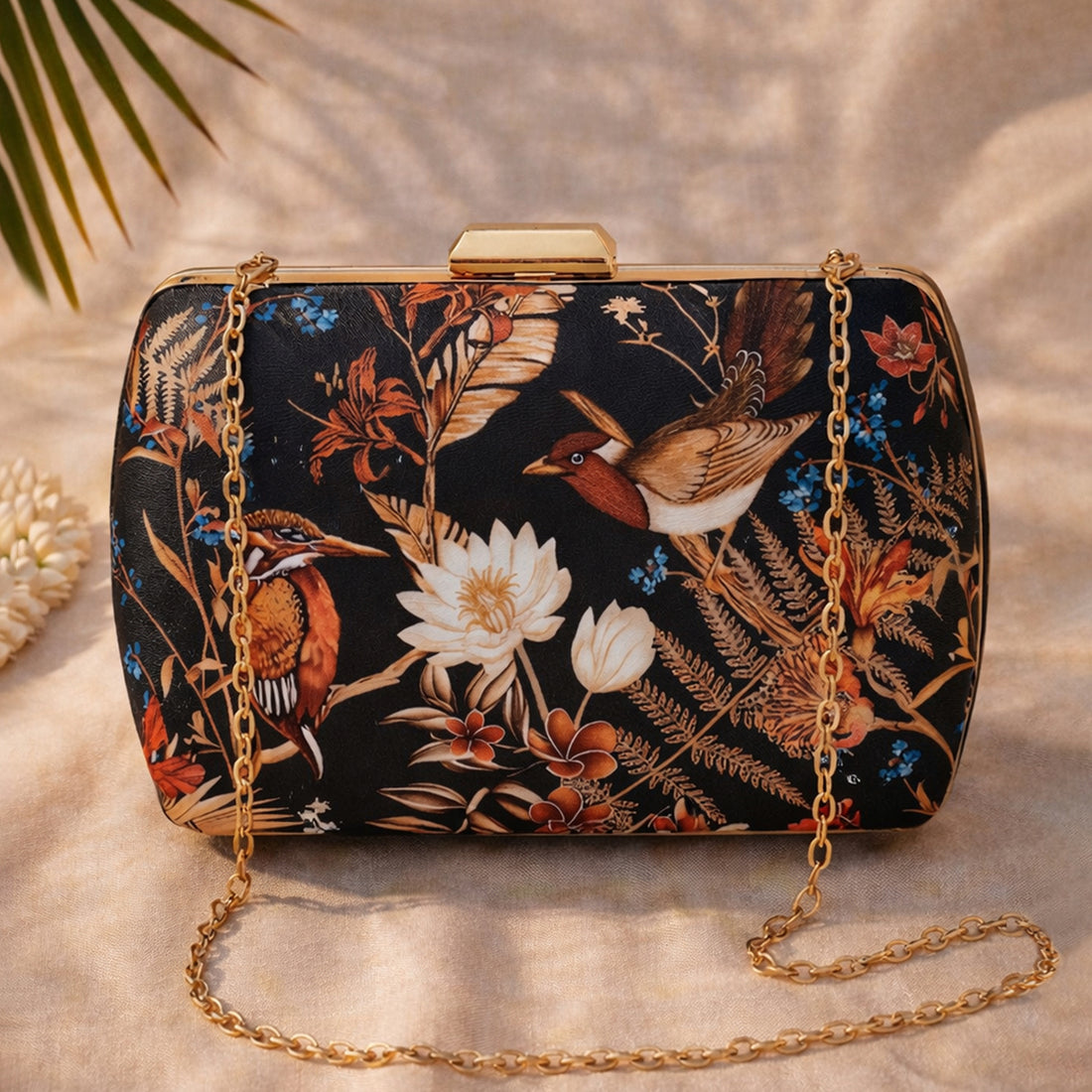 Artklim Yellow Backdrop Bird Printed D-shape Clutch