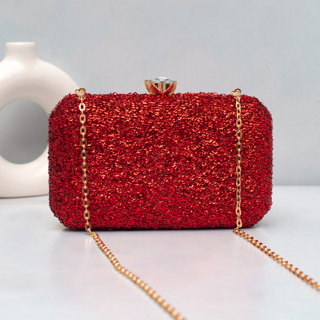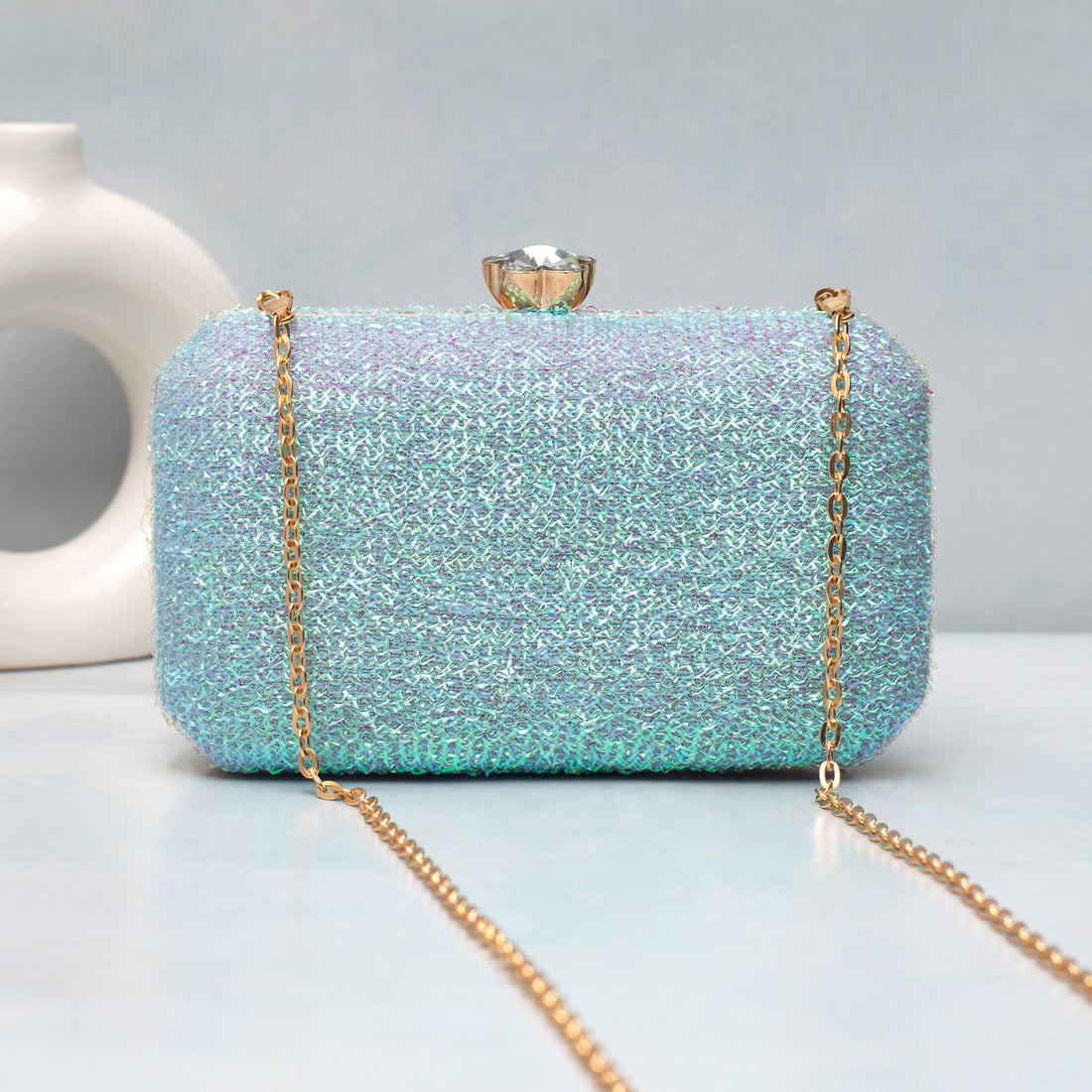 Artklim Rose Pink Shimmer Embroidery Clutch