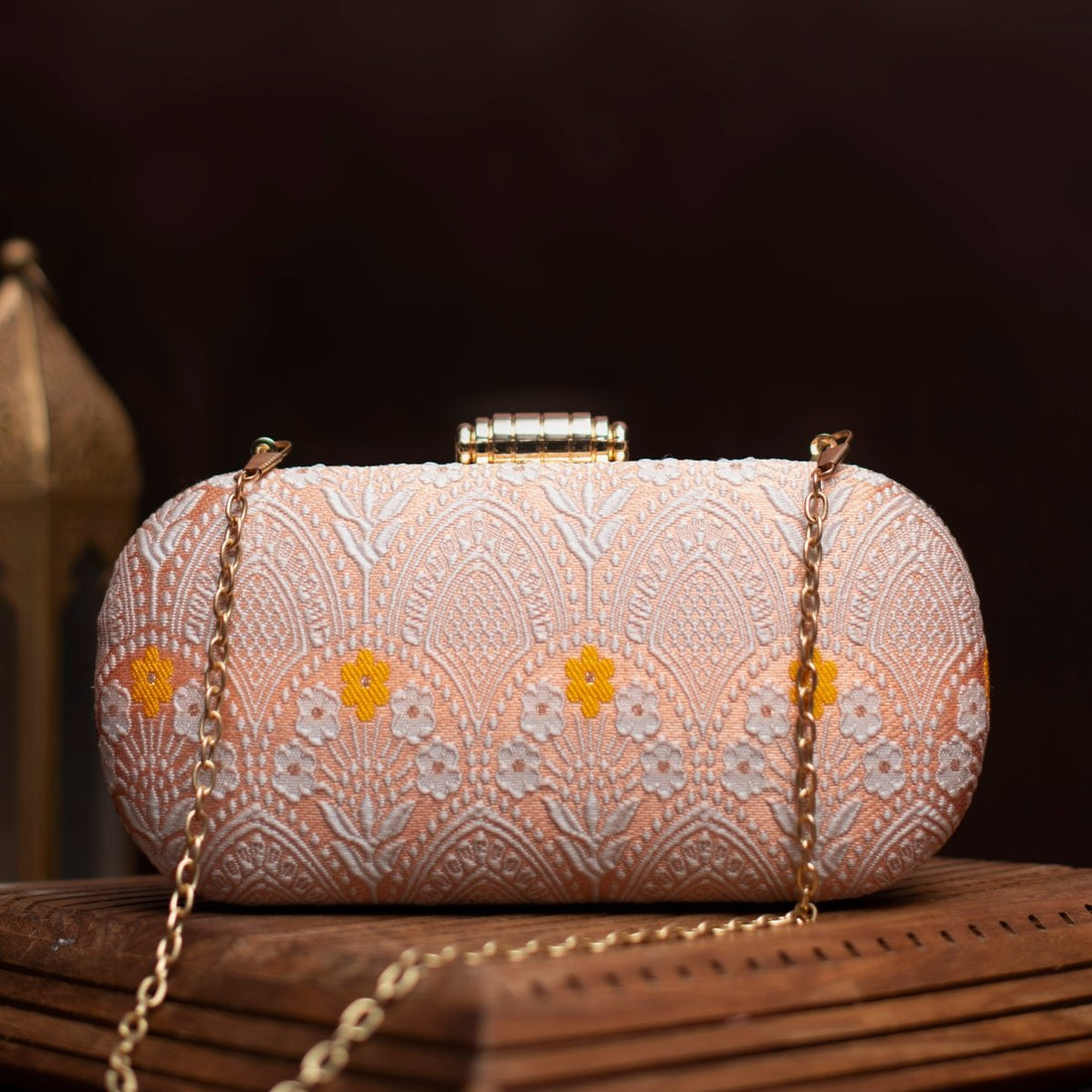Artklim Pastel Pink Based White Threadwork Embroidery Clutch