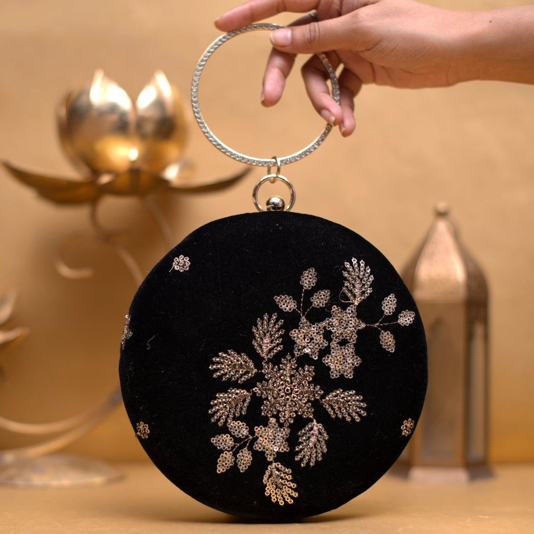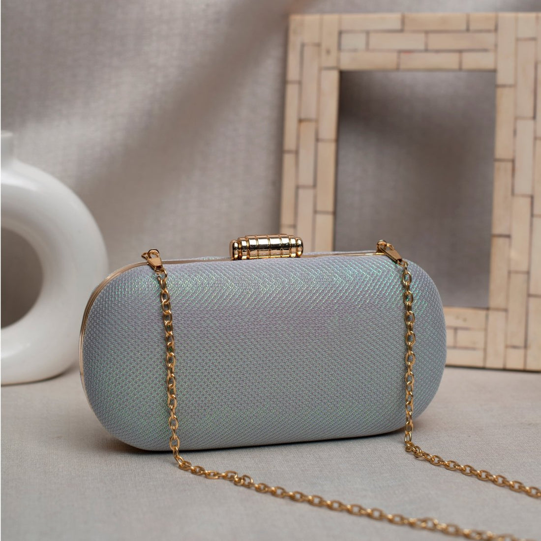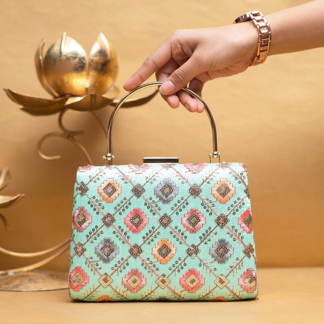 Sky Blue Sequins Embroidery Half Moon Clutch