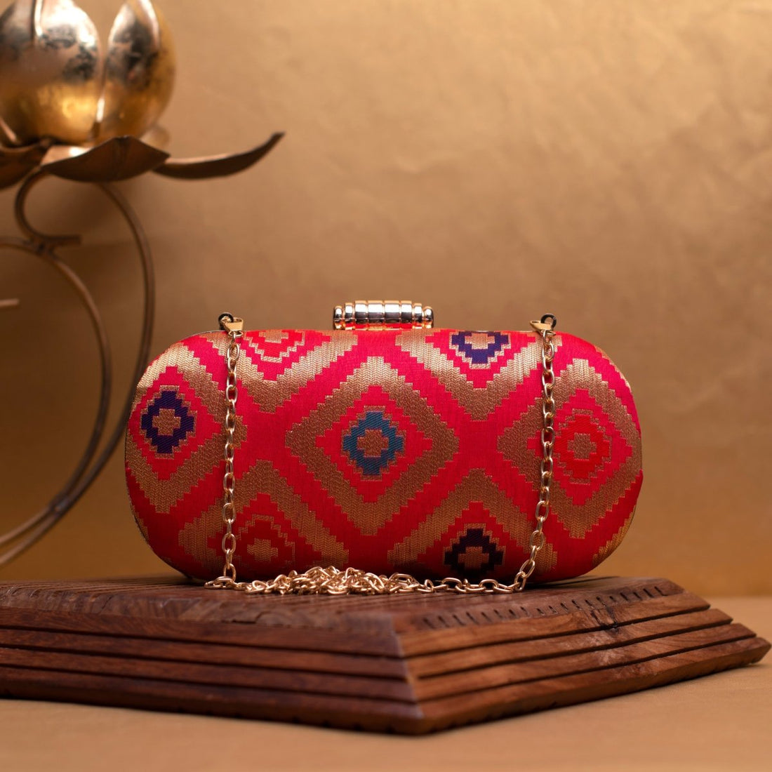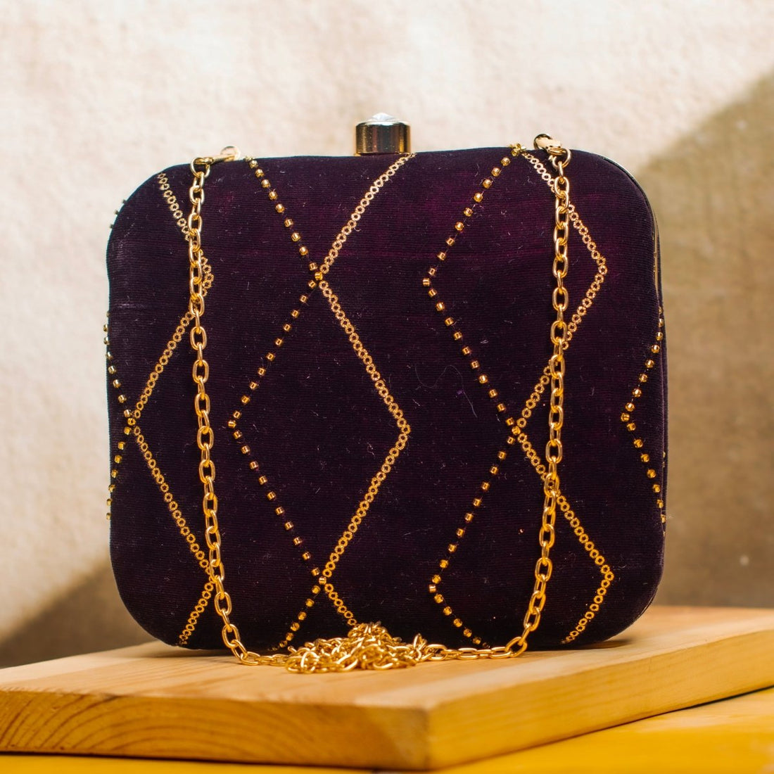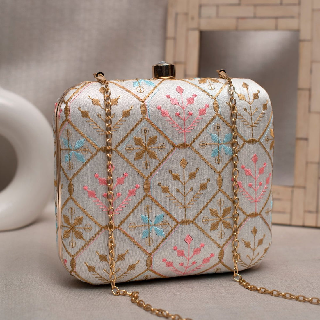 Sky Blue Sequins Embroidery Half Moon Clutch