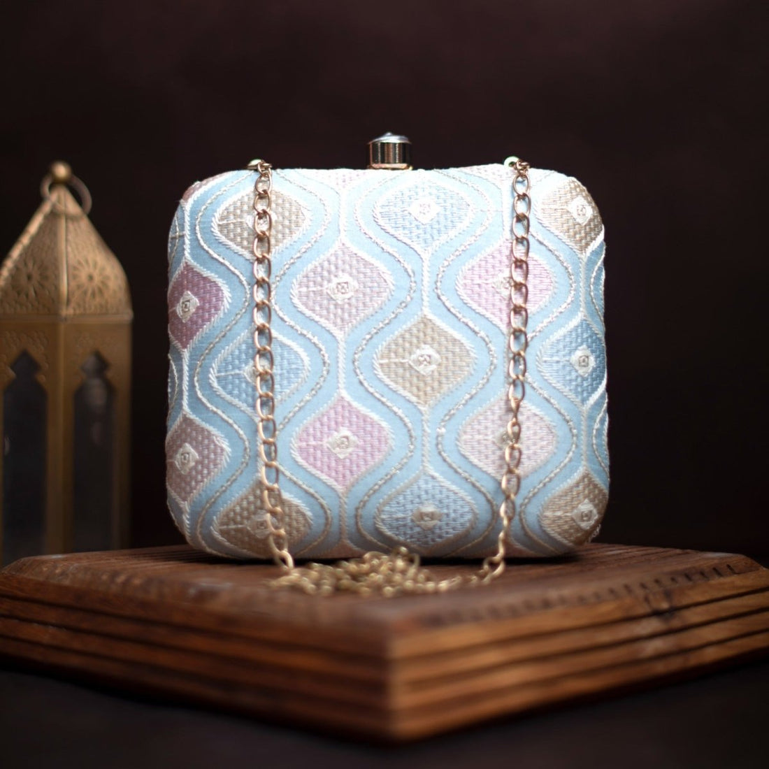 Artklim Beige Sequins Embroidered D-shape Clutch