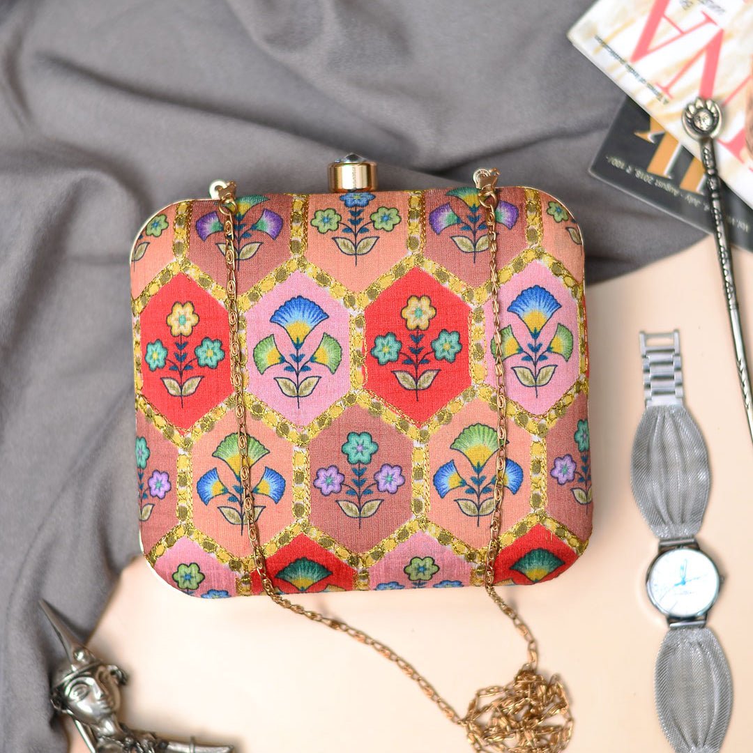 Material: Metal Frame with Plastic Hard Case with Fabric Over it. Outer: Machine Embroidery Fabric Inner: Raw...