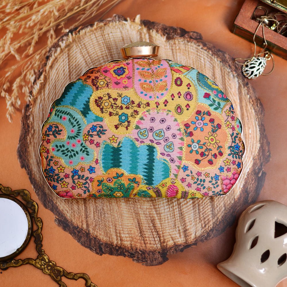 Artklim Bright Pink and Blue Traditional Print Clutch