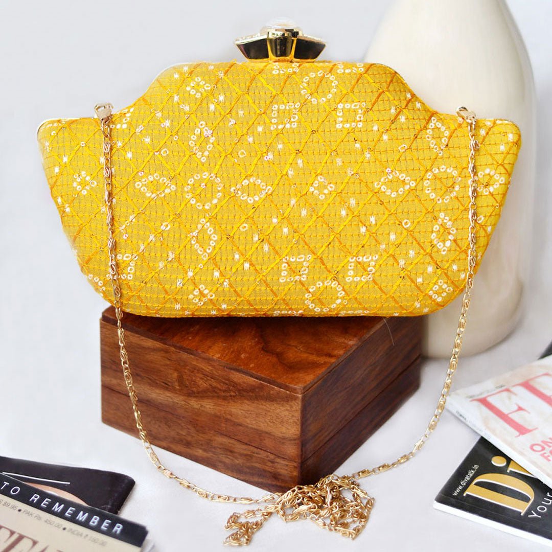 Artklim Baby Pink Clutch With Bright Golden Sequin Work
