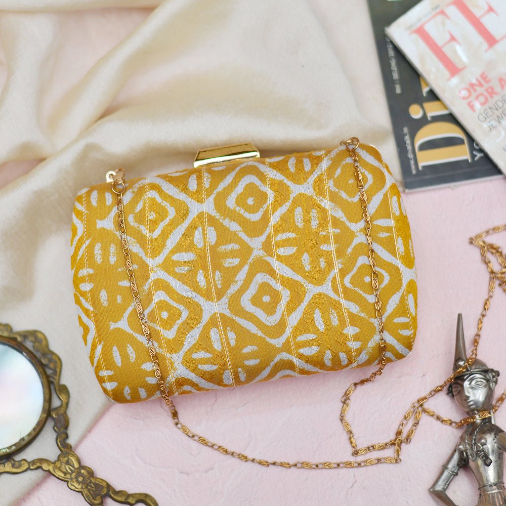Material: Metal Frame with Plastic Hard Case with Fabric Over it. Outer: Cotton Printed Inner: Raw Silk...