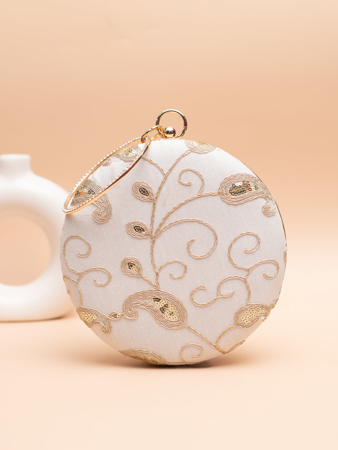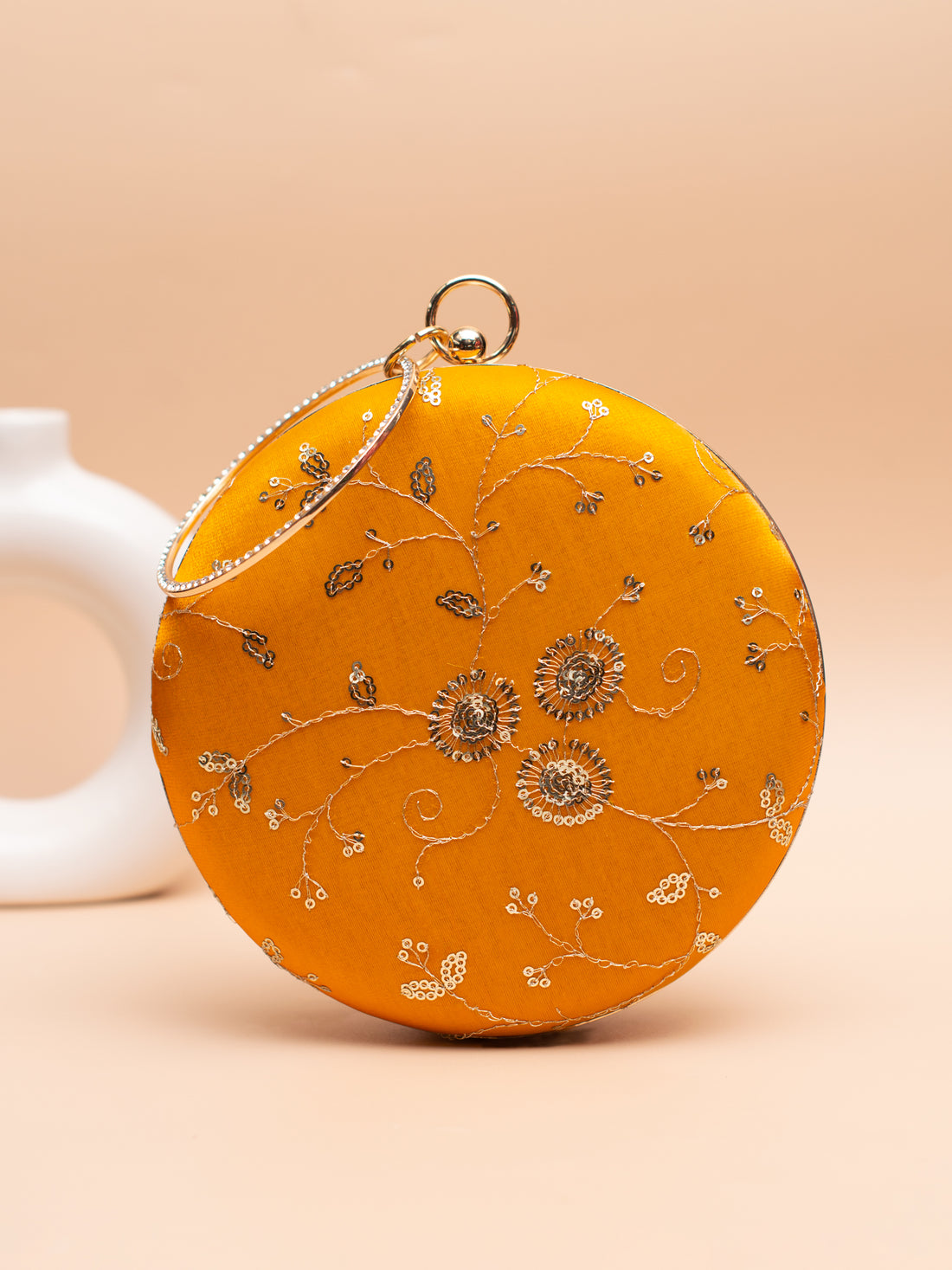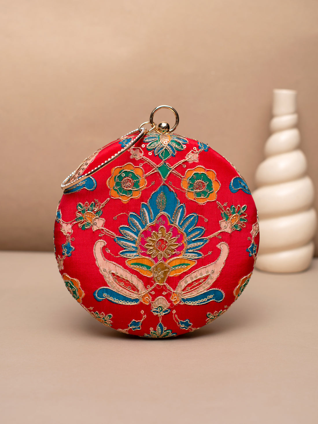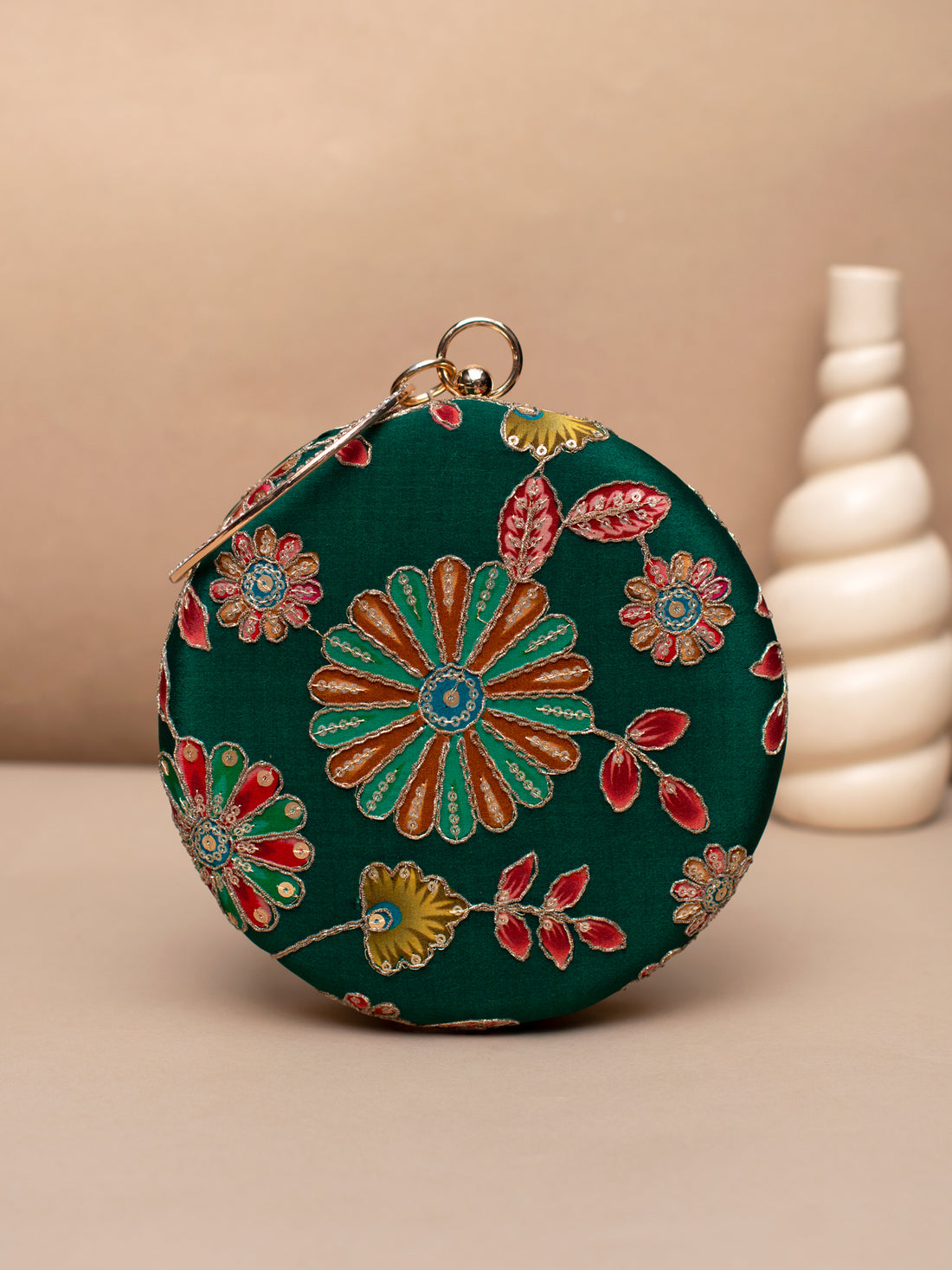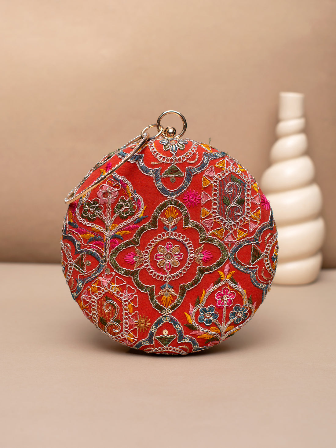 Material : Metal Frame with Plastic Hard Case with Fabric Over it. Outer : Machine Embroidery...