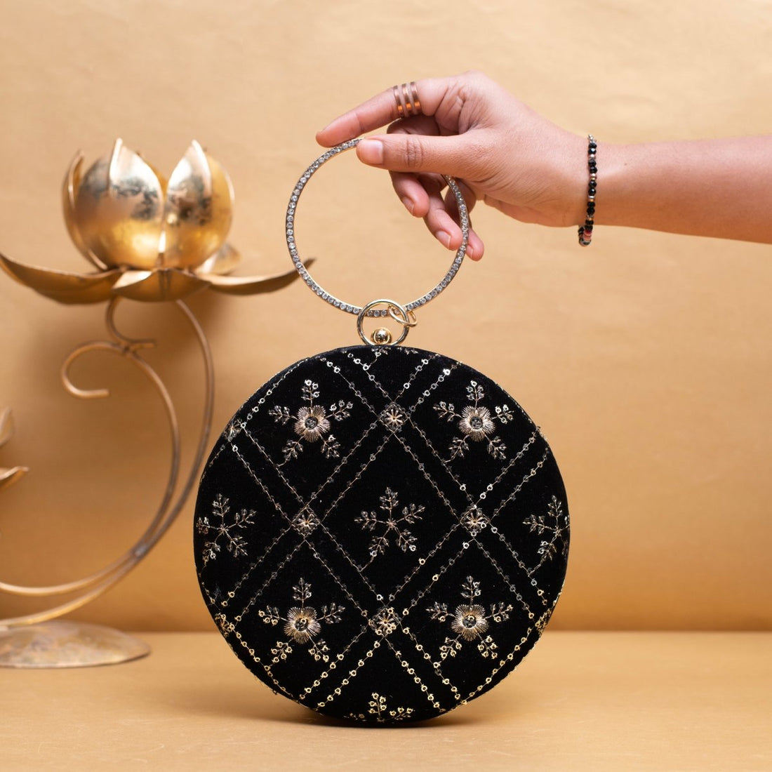 Artklim Black Based Rosegold Sequins Embroidery Clutch