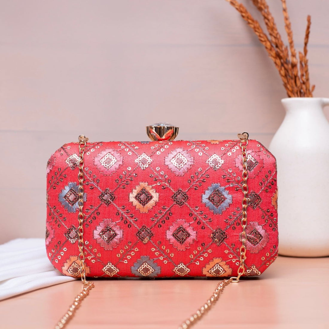 Red Sequins Embroidery Clutch