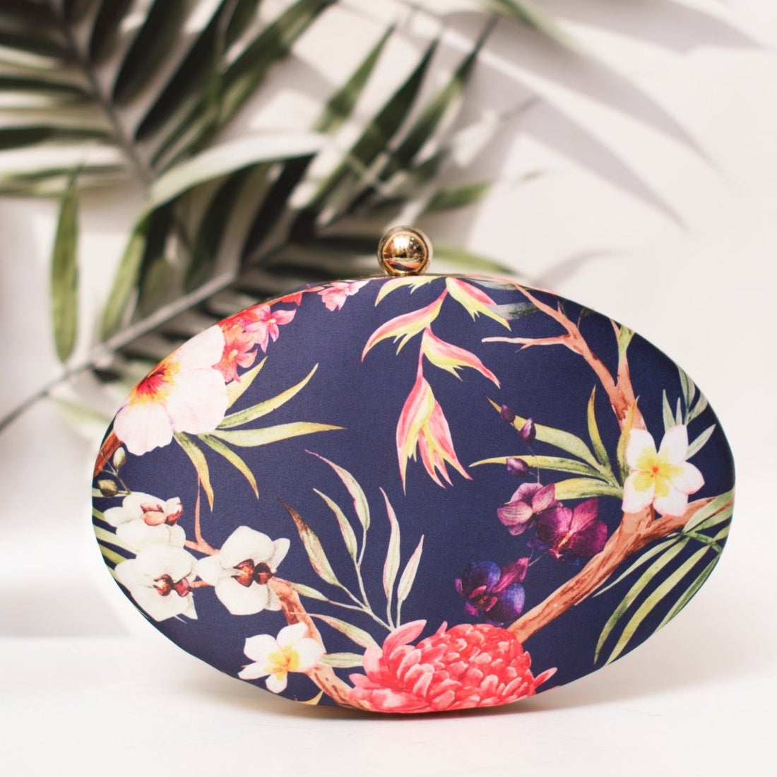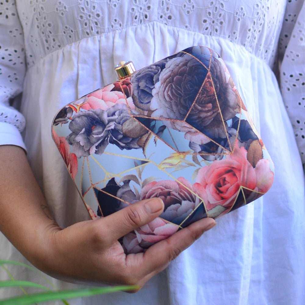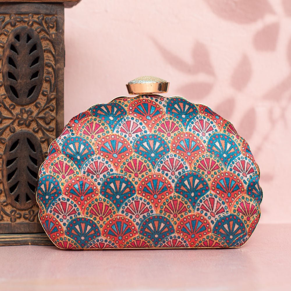 Artklim Bright Pink and Blue Traditional Print Clutch