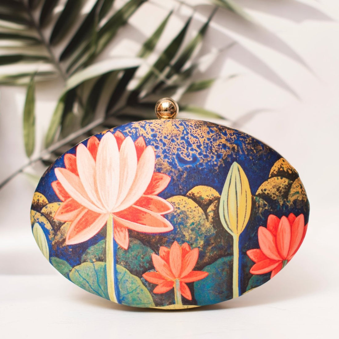 Artklim Oval Lotus Printed clutch