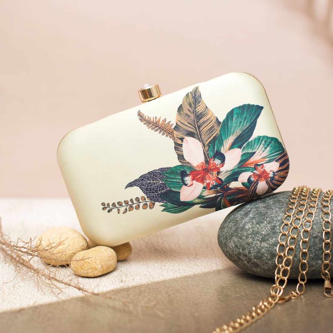Material: Metal Frame with Plastic Hard Case with Fabric Over it. Outer: Machine Embroidery Fabric Inner: Raw...