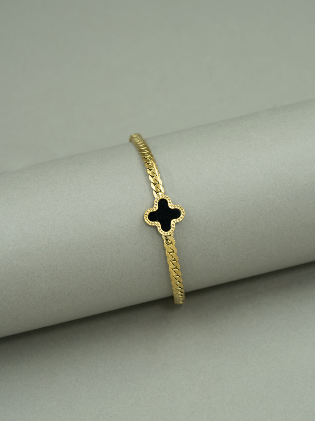 Artklim Gold Plated Anti Tarnish Black Clover Charm Bracelet