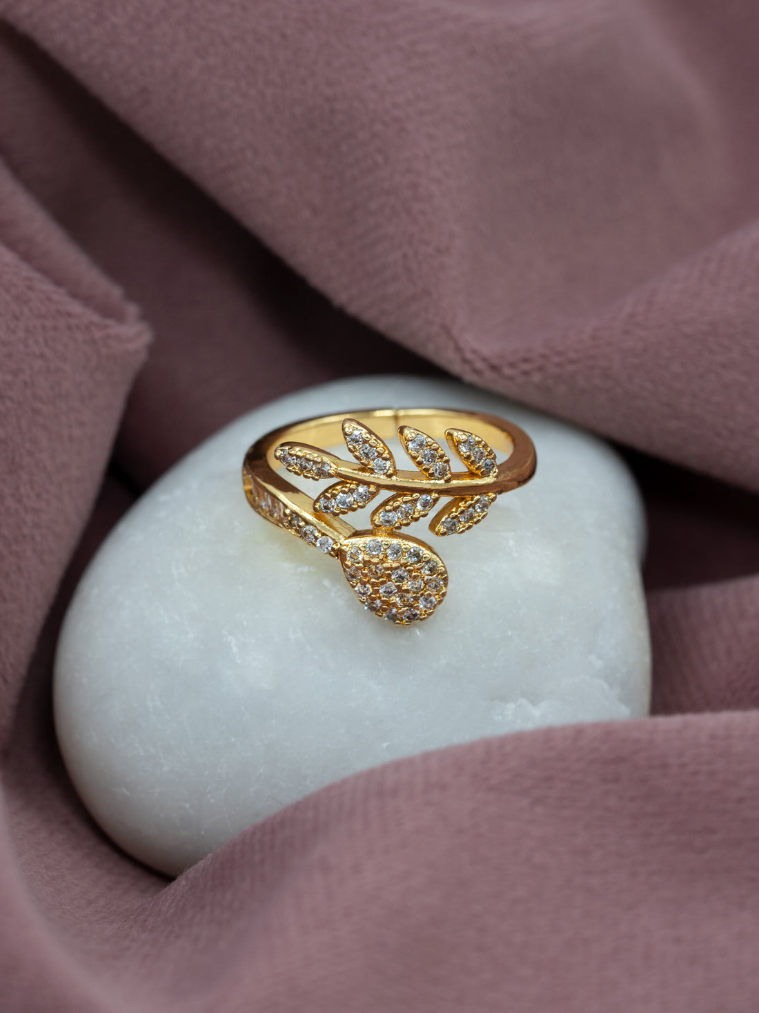 Artklim Gold-Plated Leafy Elegance Anti-Tarnish Ring