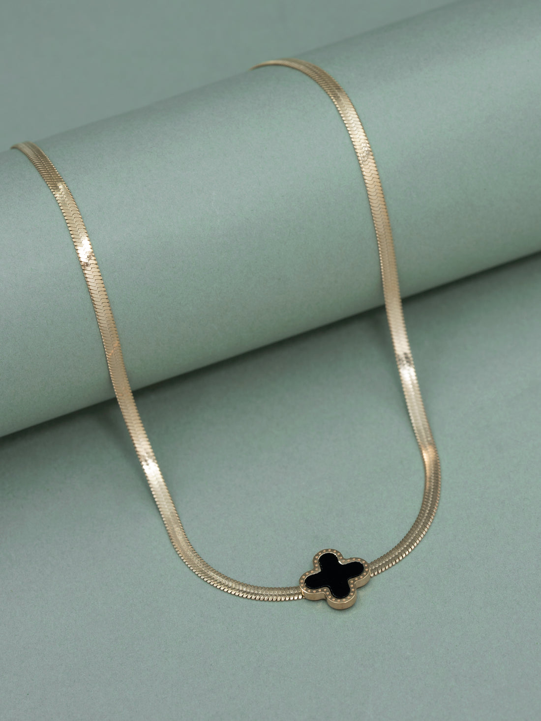 Artklim Gold Plated Black Clover Anti-Tarnish Necklace