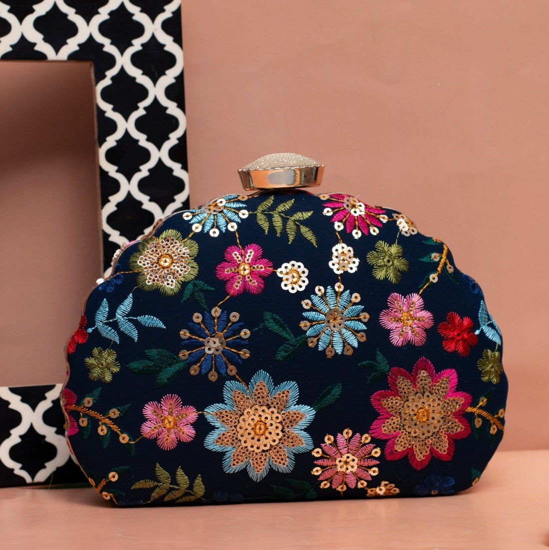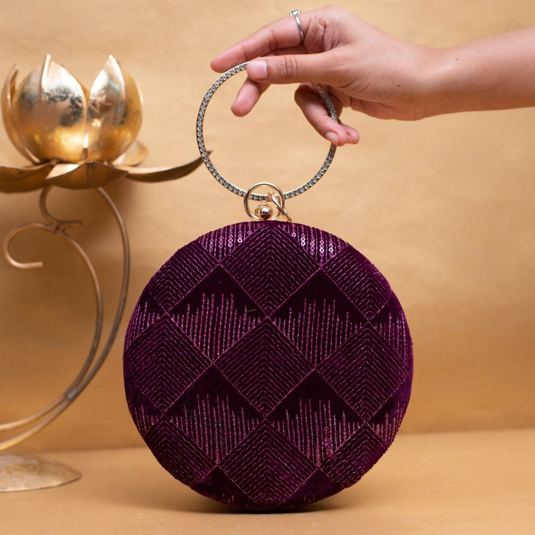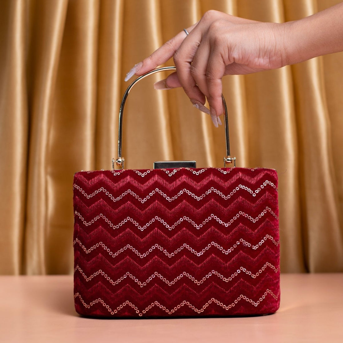 Maroon Zigzag Sequins Embroidery Party Clutch