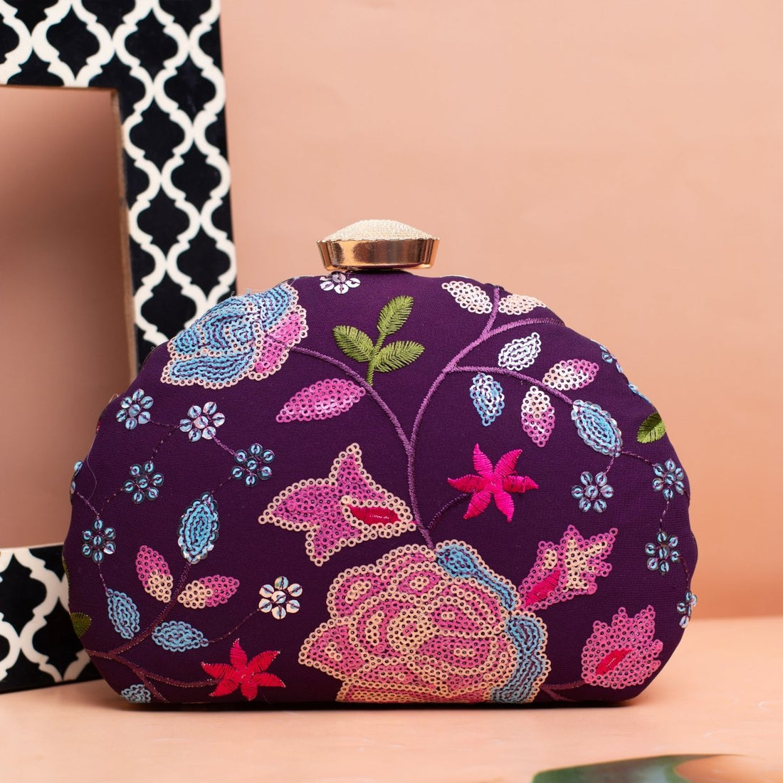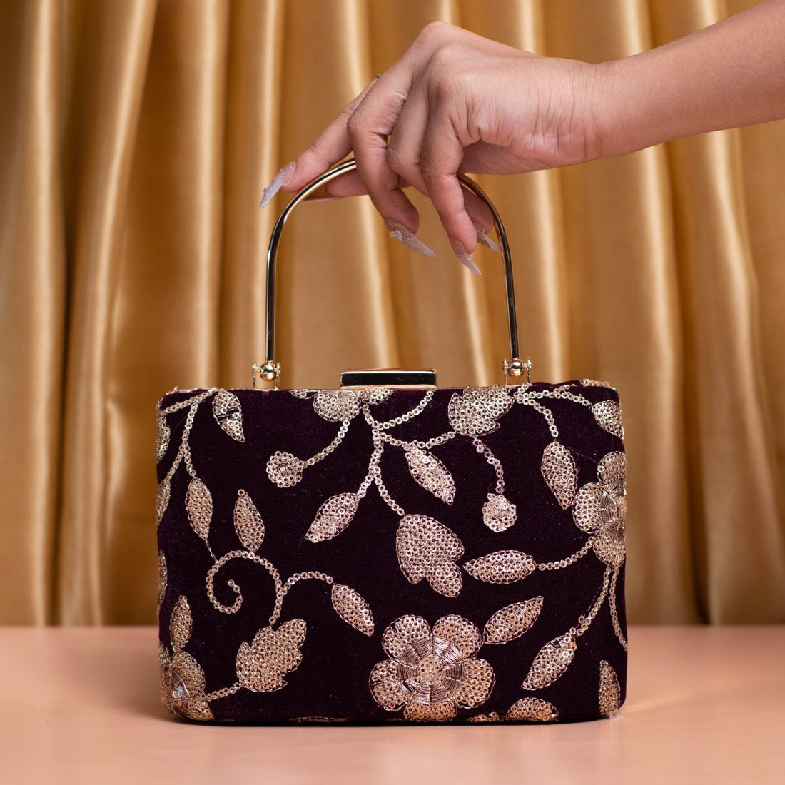 Maroon Zigzag Sequins Embroidery Fabric Clutch