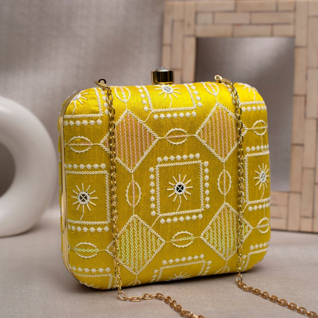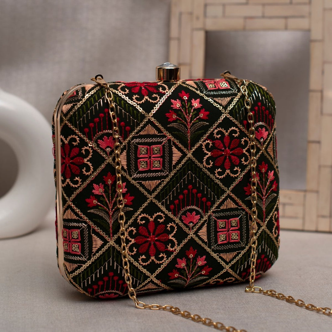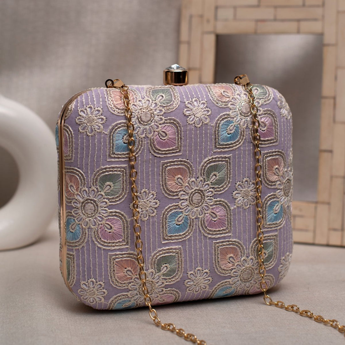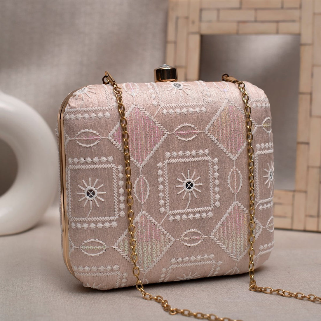 Pink Leaf Pattern Sequins Embroidery Clutch