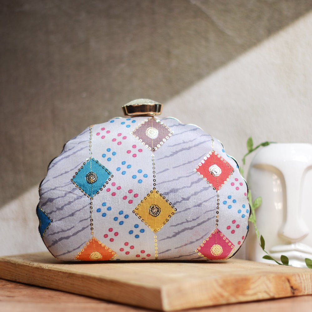 Artklim Grey Sequins Embroidered D-shape Clutch