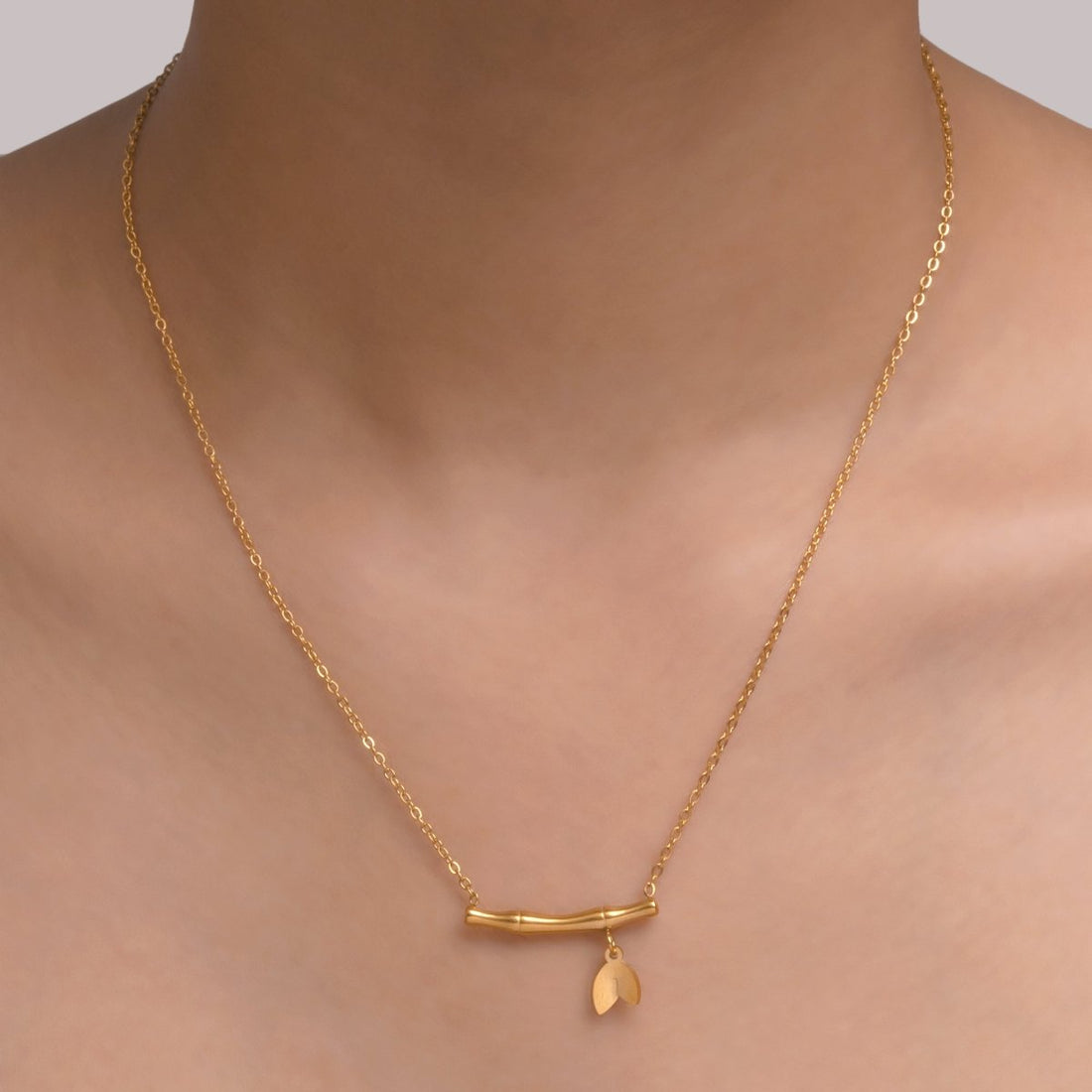 Artklim Gold Plated Bamboo Leaf Pendant Necklace