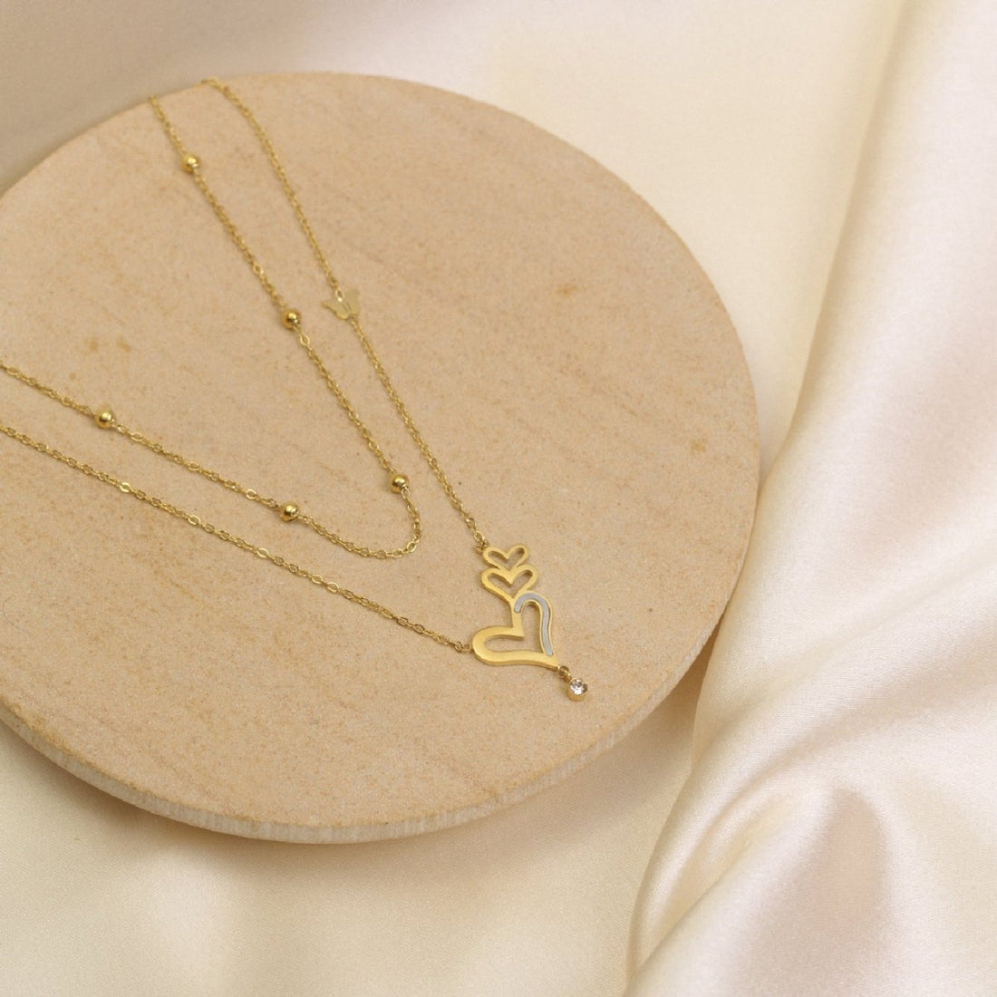 Artklim Gold Plated Double Layered Hearts Pendant Necklace