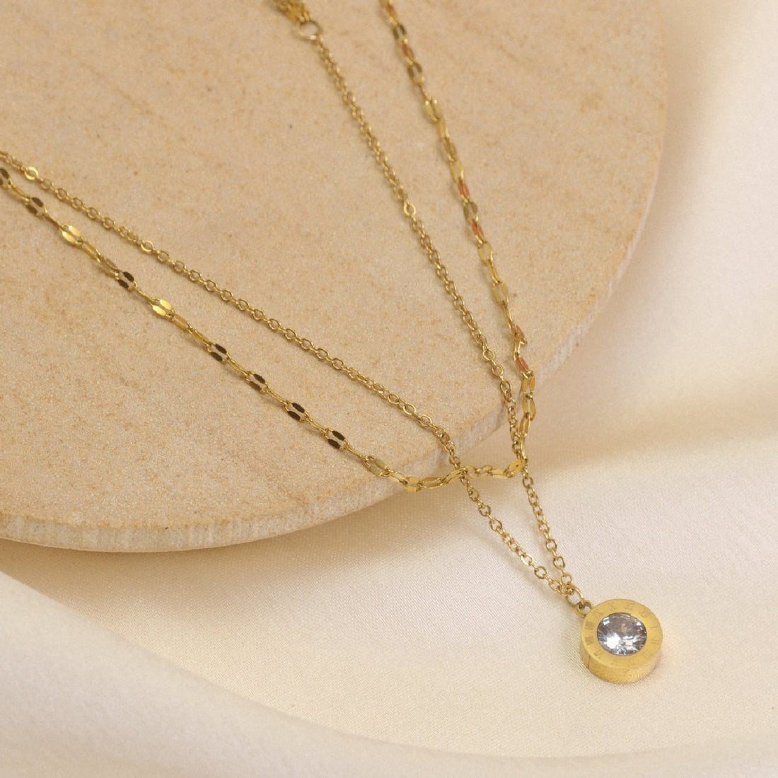 Artklim Gold Plated Double Layered Roman Numerals Round Pendant Necklace