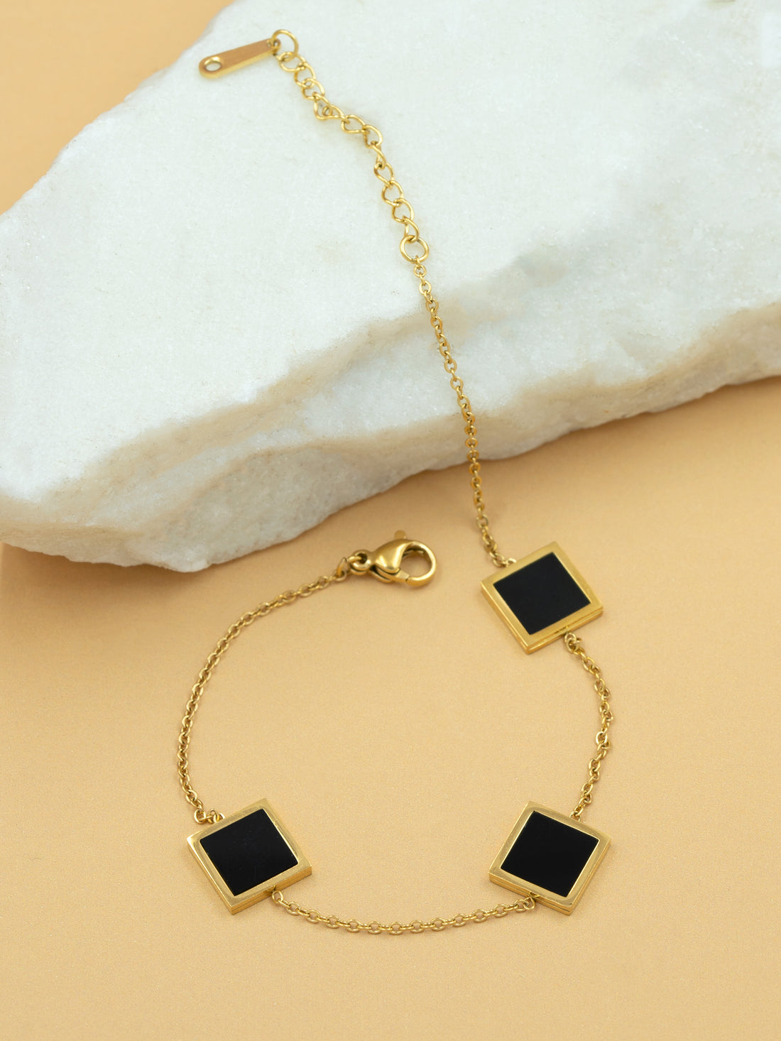 Artklim Gold Plated Anti Tarnish Black Square Charm Bracelet