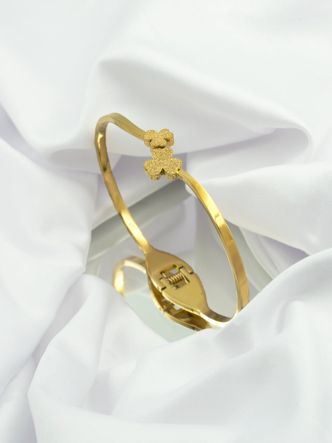 Artklim Gold Plated Anti Tarnish Golden Clover Cuff Bracelet