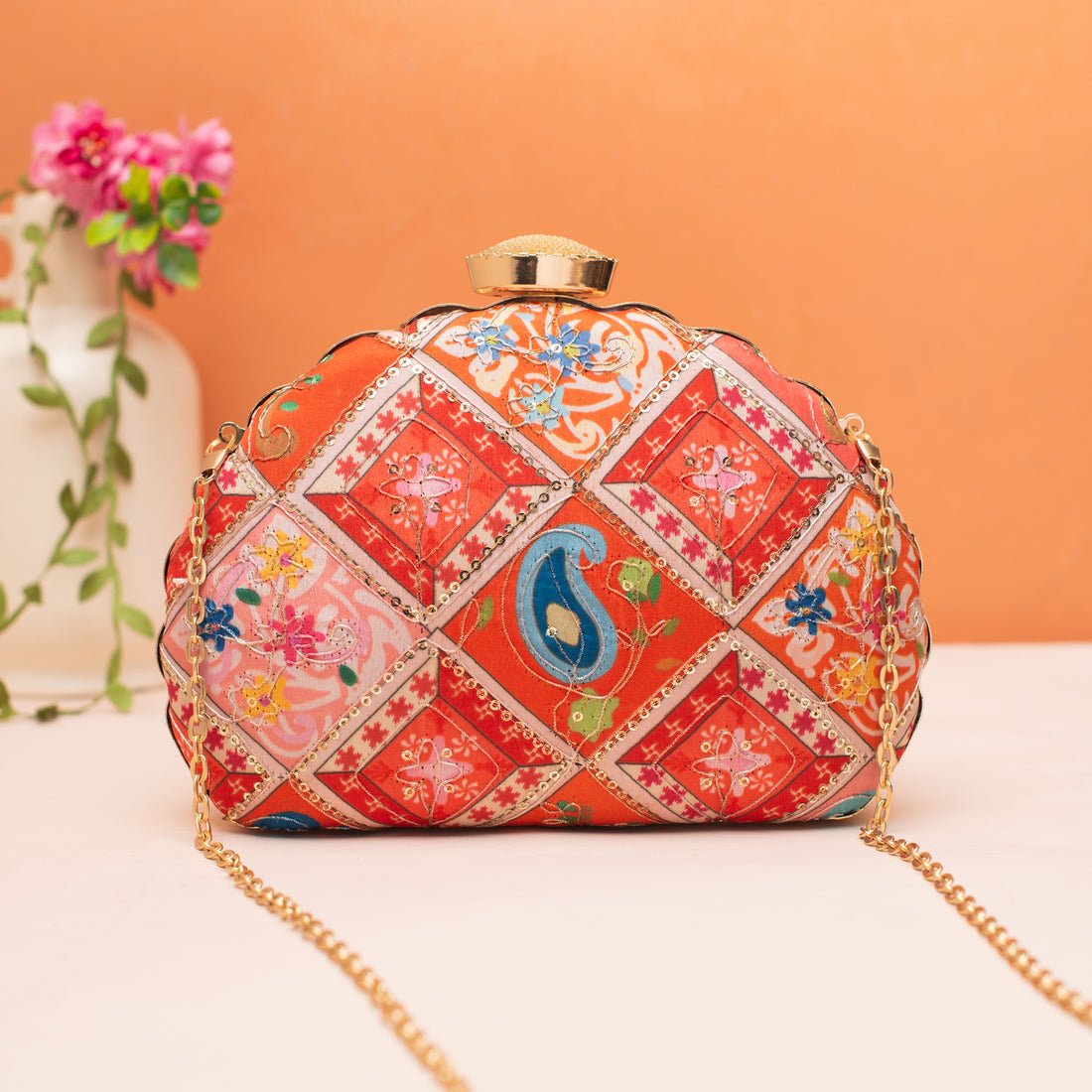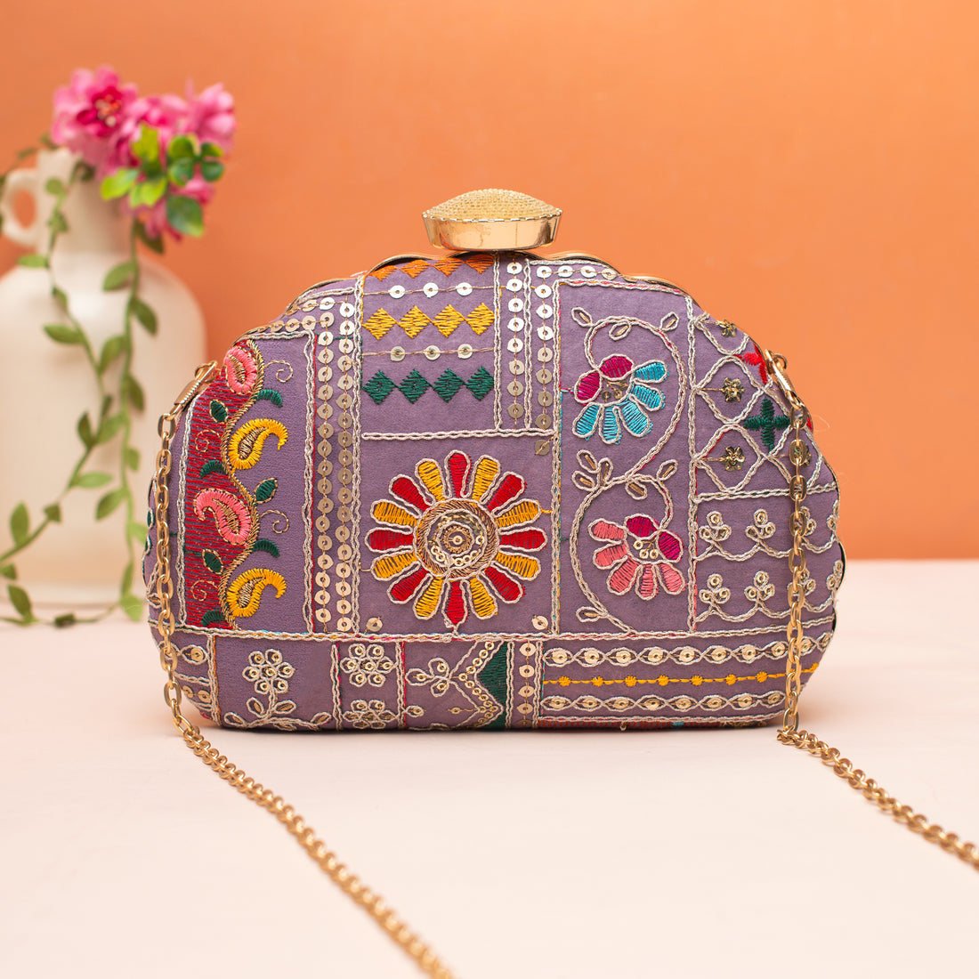 Artklim Vintage Sequins Embroidery D- Shape Clutch