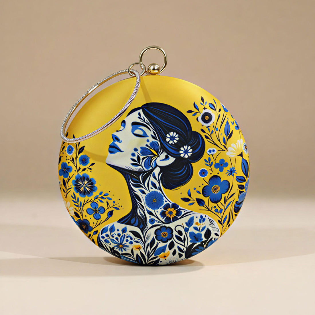 Artklim Yellow Multicolour Ethnic Embroidered Clutch