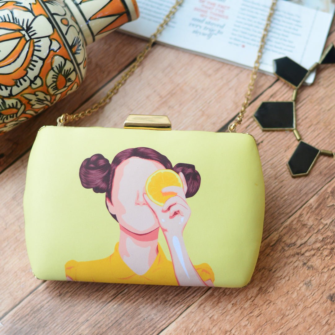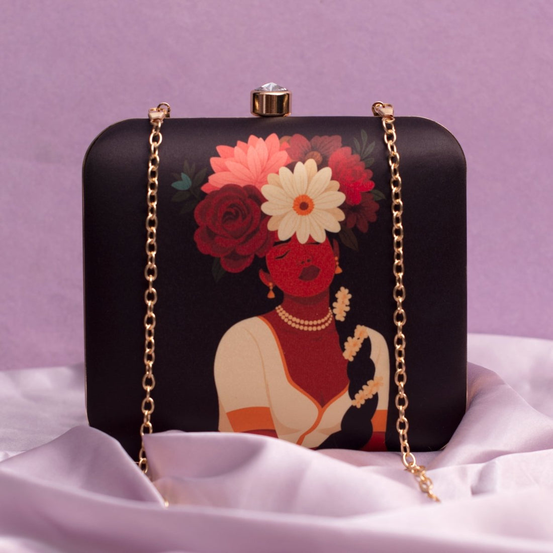 Artklim Black Based Afro Woman Portrait Printed Clutch