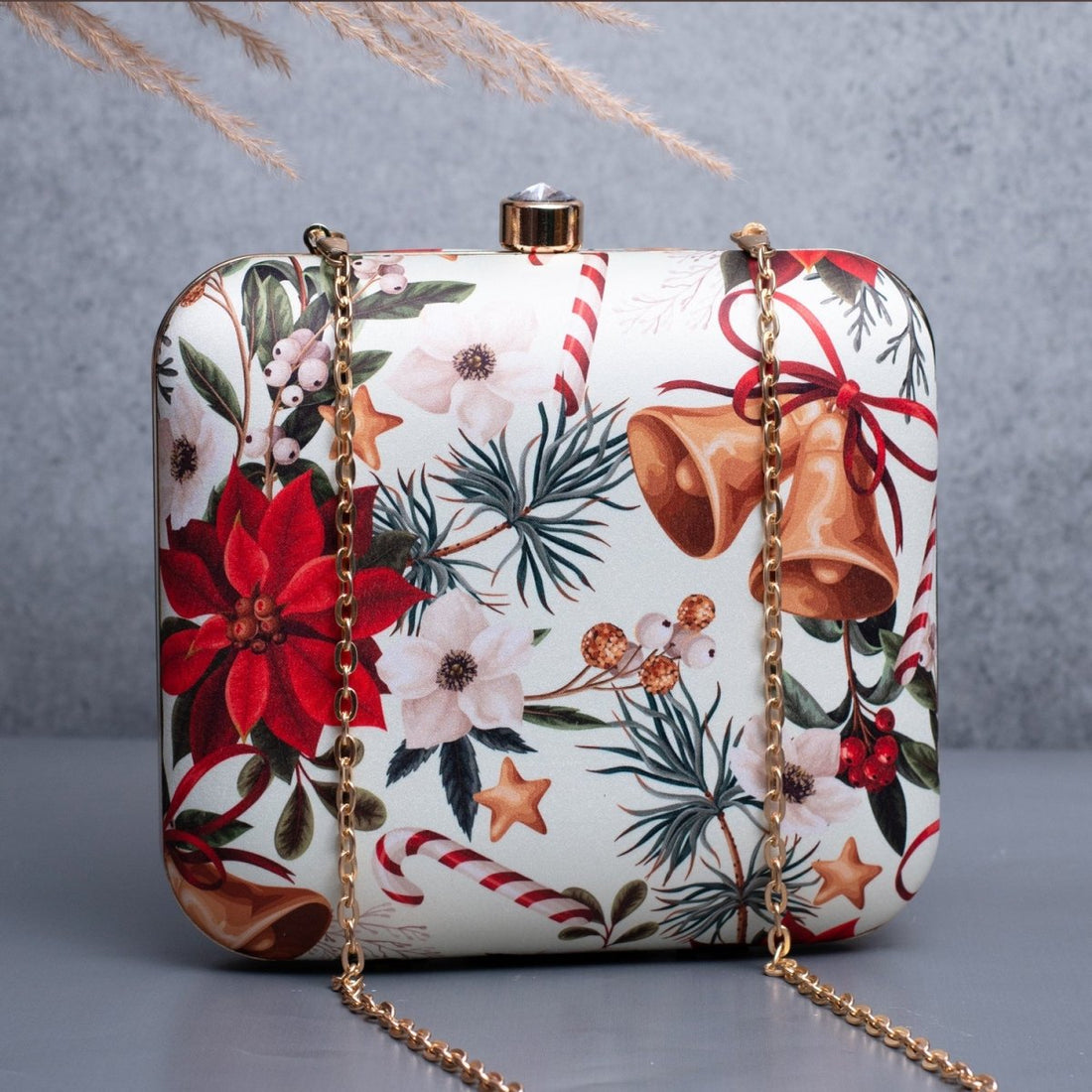 Cream Base Multicoloured Girl Suitcase Style Clutch