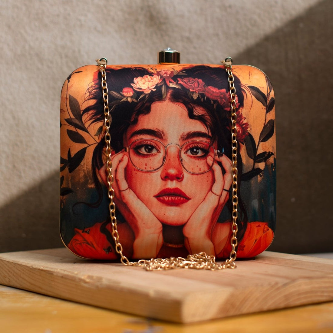 Artklim Blue Based Floral Women Portrait Printed Clutch