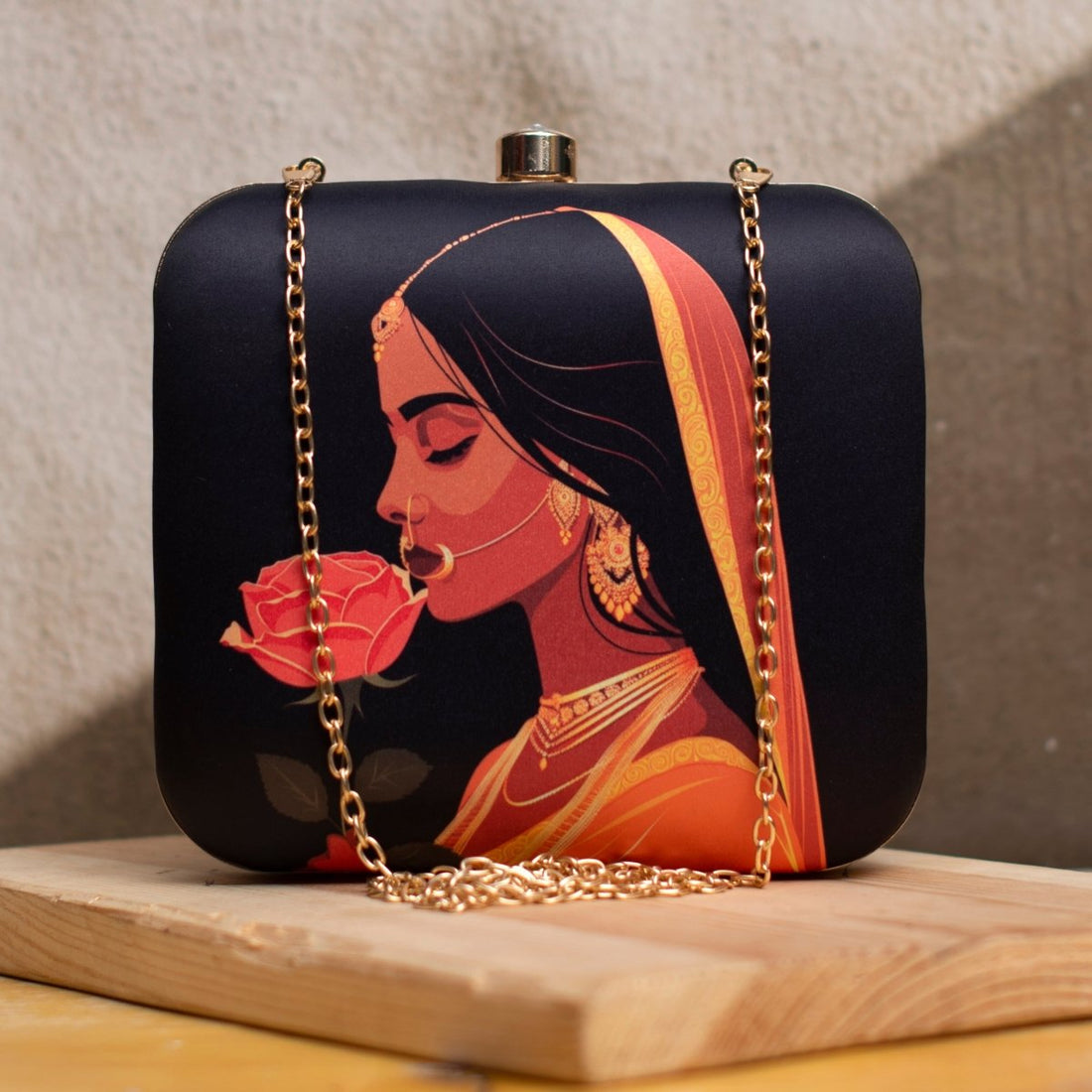 Orange And Blue Bird Printed Suitcase Style Clutch